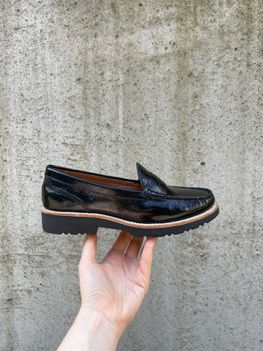 GABOR MOCCASIN MET DIKKE ZOOL EN GESP LAKLEDER ZWART