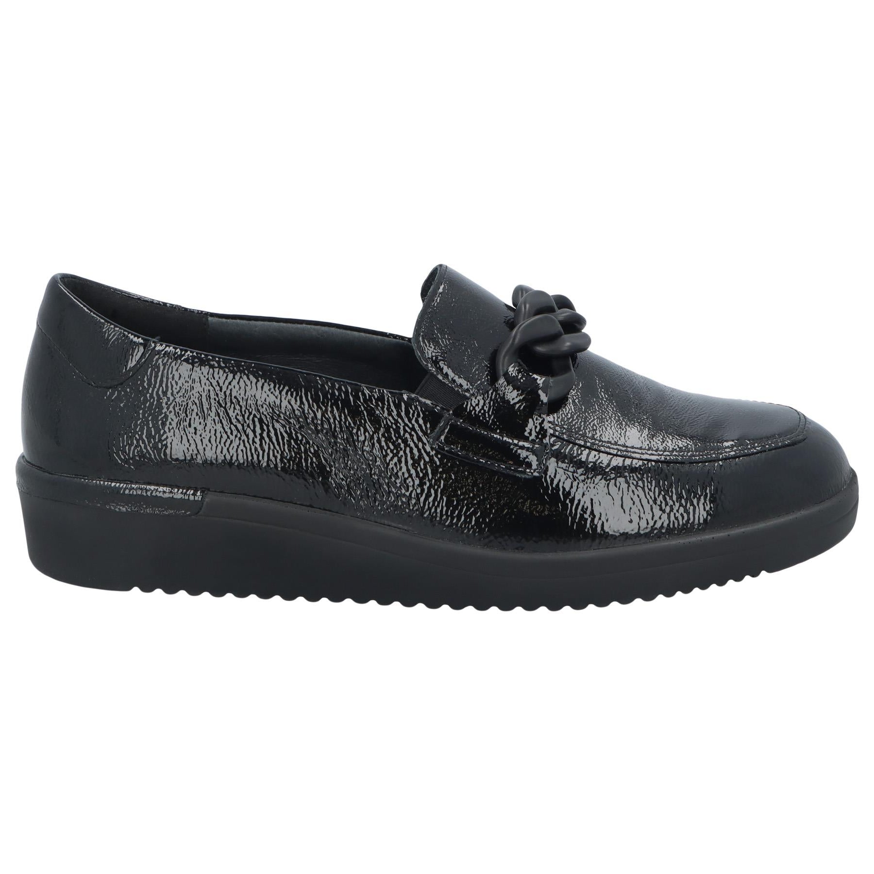 SOLIDUS DAMES LOAFER MET UITNEEMBAAR VOETBED K WIJDTE LAKLEDER ZWART