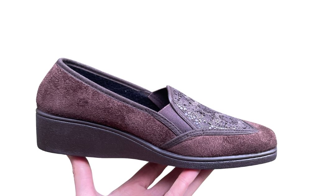 Gesloten comfortpantoffel met elastieken vooraan die zorgen voor een optimaal comfort. De hakhoogte van ongeveer 2,5 cm zorgt voor een optimaal loopcomfort. Nog niet overtuigd? Kom gerust eens passen!