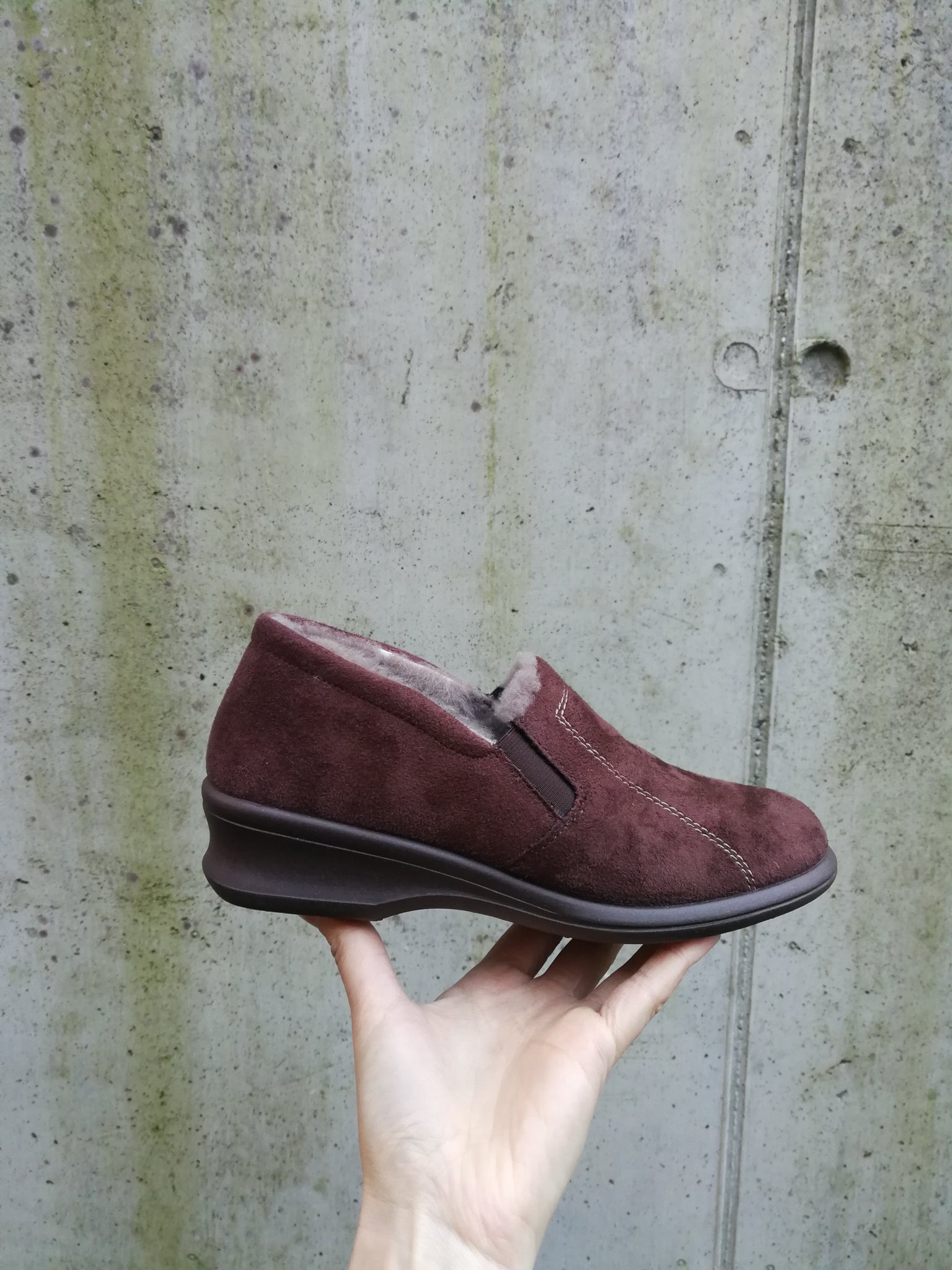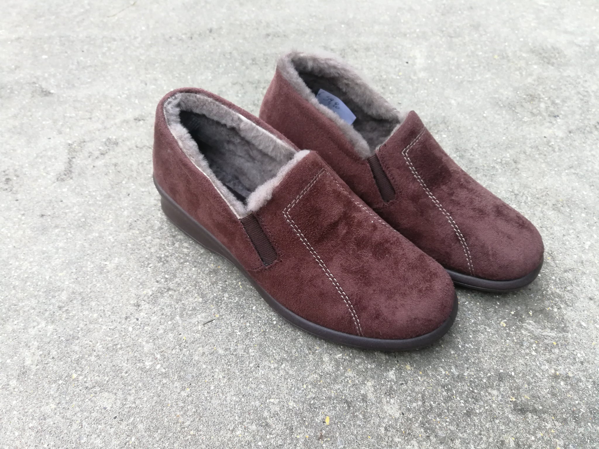 Warme gesloten pantoffel van Rohde met schapenwol binnenin.