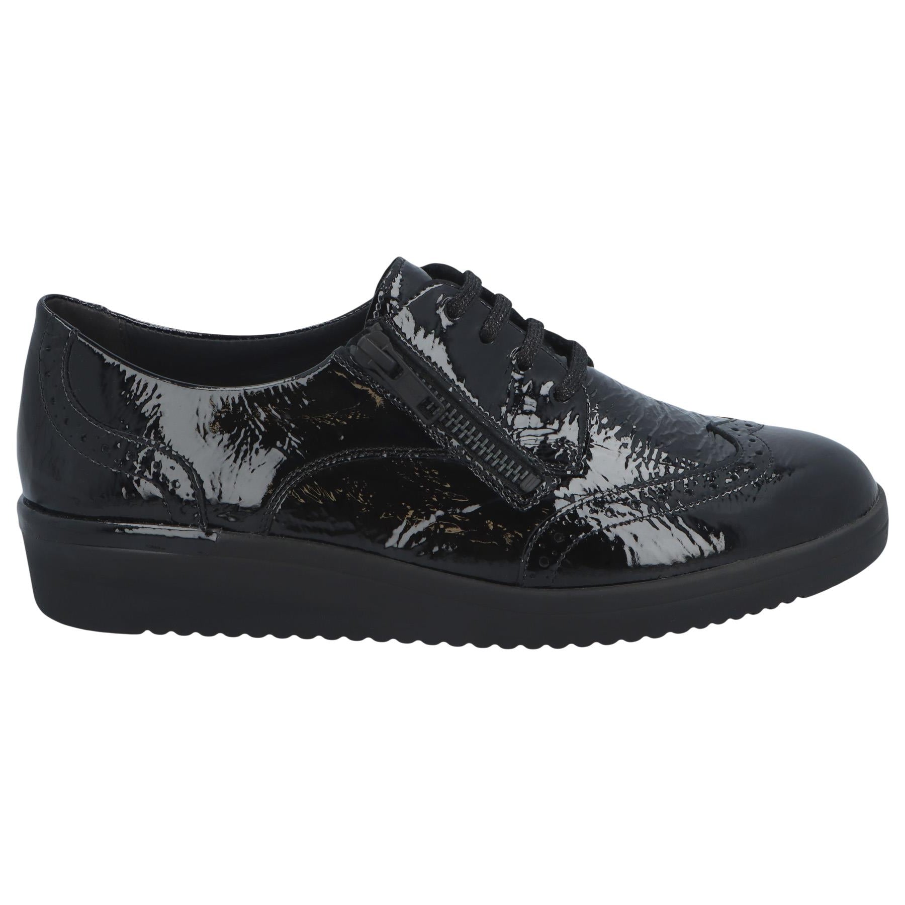 Elegante geklede schoen van Solidus in ruime K-wijdte, perfect voor bredere voeten. Voorzien van veters en een rits voor een optimale pasvorm en eenvoudig aan- en uittrekken. Kom eens passen!