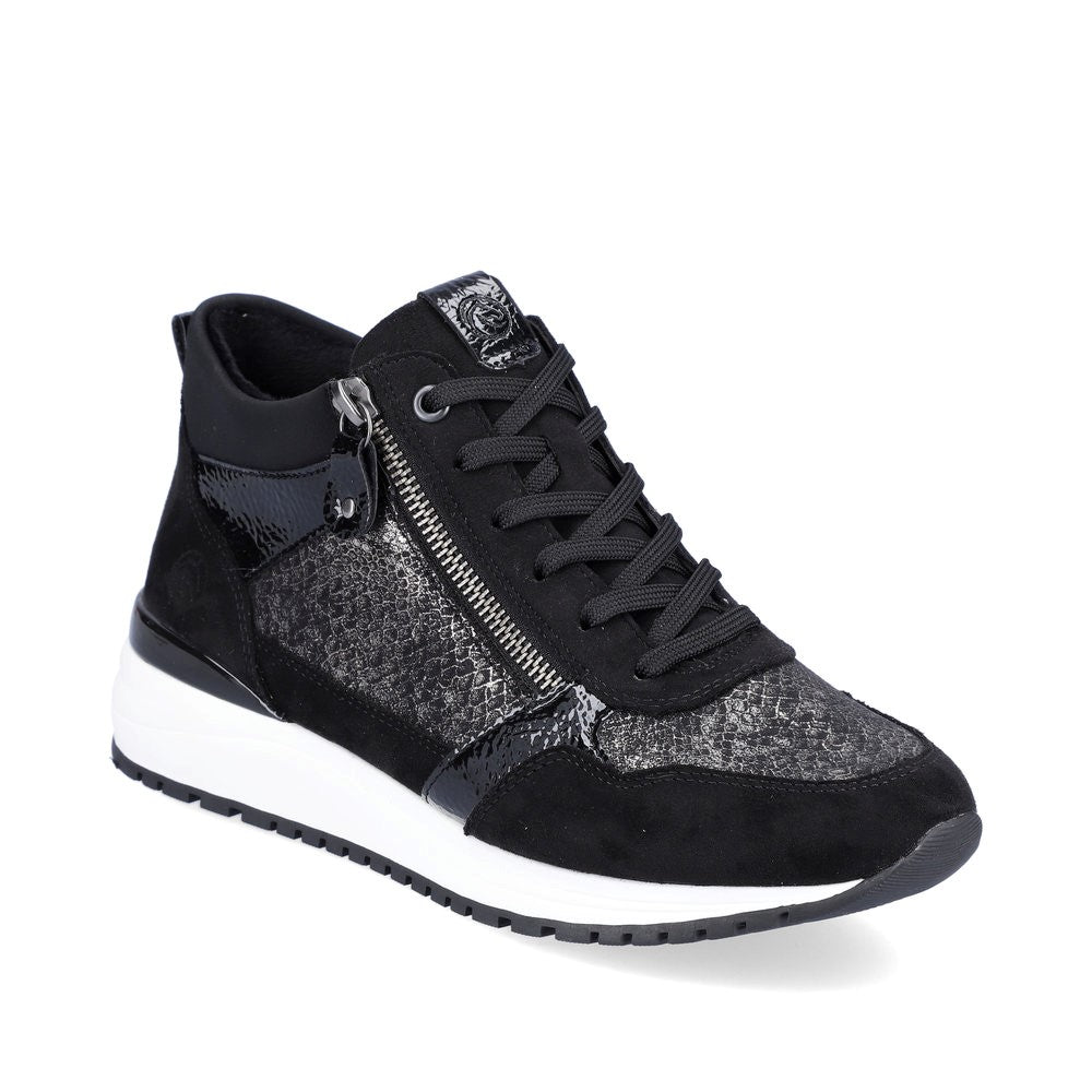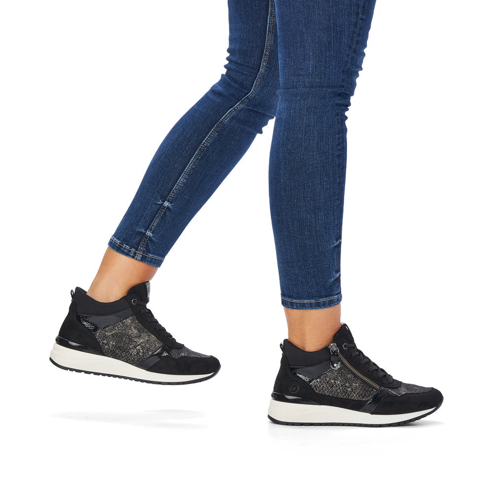 Stijlvolle hoge sneaker van Remonte met veter, rits en uitneembaar voetbed. Deze hippe sneaker heeft een heel hoog loopcomfort.
